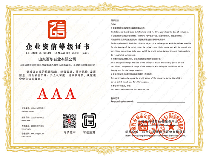 企業信用等級證書