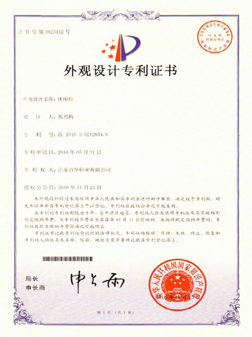 一種減震按摩止滑休閑鞋實用新型專利證書